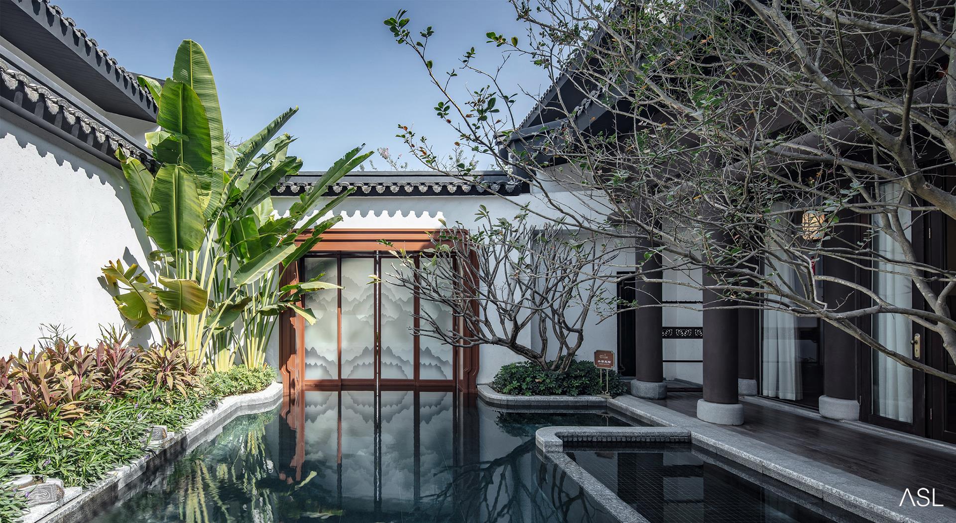 酒店位于惠州惠城区,它隐匿于泽谷之中,坐拥“一泉一湖两水五山”的独特景观。项目集温泉、客房、餐饮、会议、健身于一体的顶级精品度假酒店。由大小不同的四合院落组成,酒店一期以“天籁”命名,表达其与山居生活的自然惬意完美契合,并以“中式建筑,东方意境”的文化气质为主题打造一座悠然惬意的东方休闲度假酒店。设计以新中式庭院文化底蕴为依托,从东方文化、中式建筑、自然山水中提炼色彩、艺术、材质为元素。通过东方禅意美学的组合方式,将厚重浓郁的中式元素重组,并融入现代温泉的养生、自然、温润概念,呈现出中式意境之美。