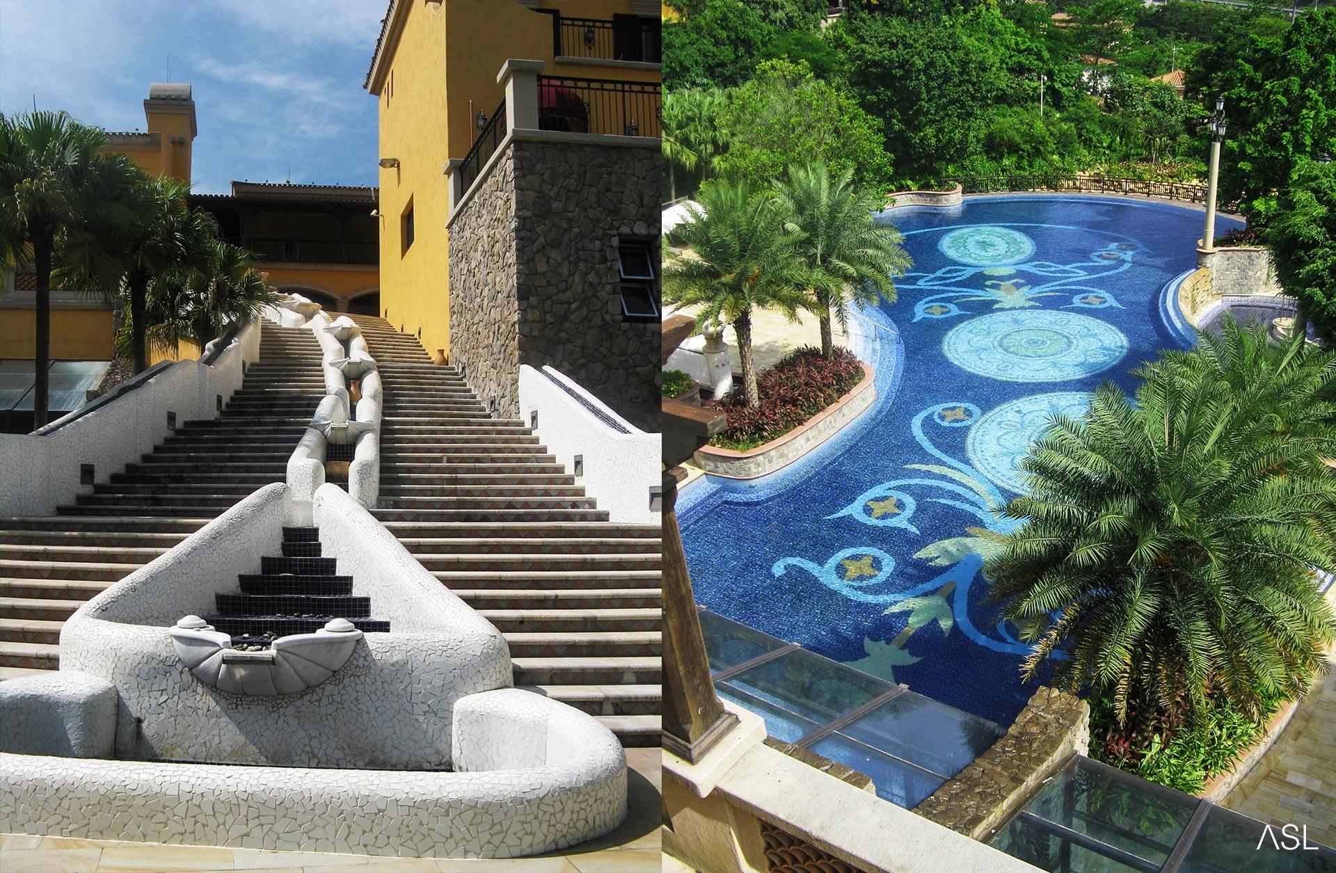 项目以西班牙建筑风格,以所在片区的罕缺、独有的山地资源为特色,设计联排、双拼和独立式别墅等低密度住宅。建成后成为集超市、休闲餐饮、银行证券、美容美发、精品零售、教育培训、家居生活等配套服务的大型情景体验式商业街区。